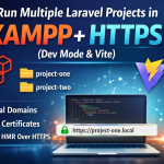 Running multiple Laravel projects on XAMPP is totally doable — and you can even serve them over HTTPS with a working Vite dev server. This guide shows a clean setup for two projects using example domains.